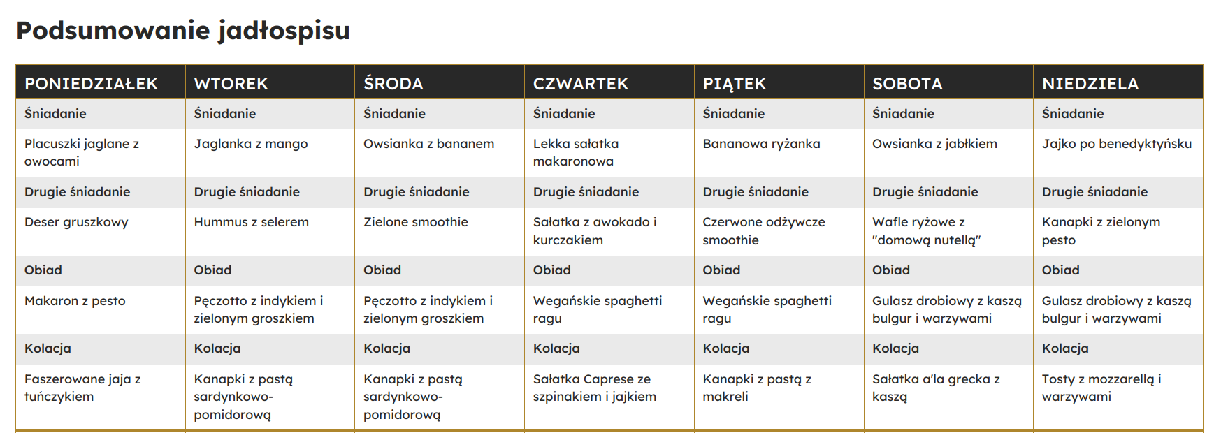 • Poprawę nawyków żywieniowych – jadłospis jest dla osób, które nie wiedzą z jakich produktów korzystać i w jakich proporcjach je stosować.